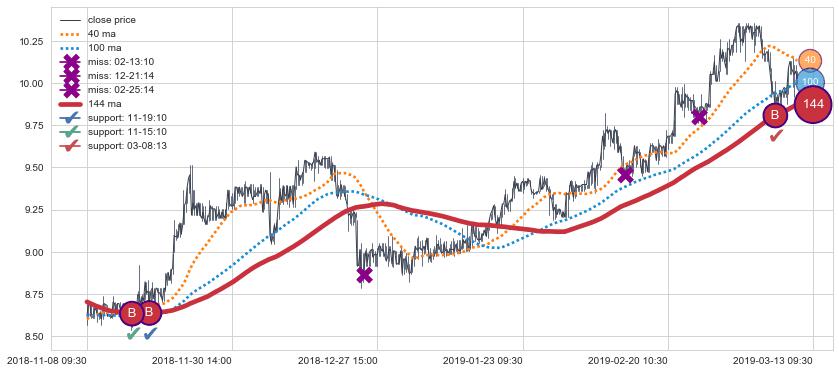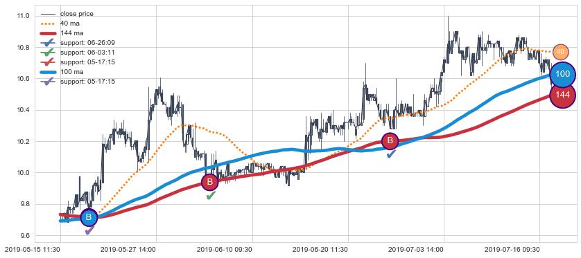 上涨趋势05-15 11:30-07-17 09:30,均线144, 100确认关键支撑3处