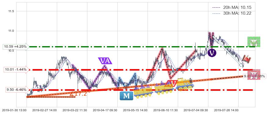 ♘ 阻力价格位10.59,可信任强度74.15%,距离最后交易2019-07-31 15:00形成的收盘价格10.16相差 +4.25%