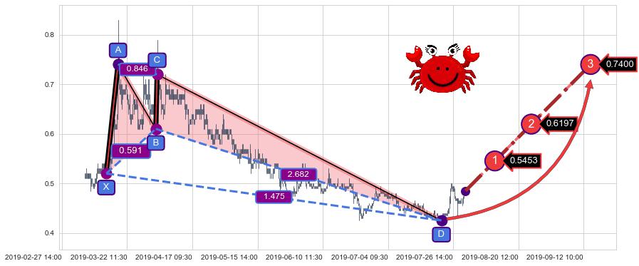 | 2 🅚:上升覆盖线 ➕ 📡:谐波螃蟹已到达d点:猜想c下行到达d点后报复性拉升上涨(均值回复) ☞ 看多信号 ⇥ 【🅚线】交织【图形】⇥ 综合量化分数: 60 | > |