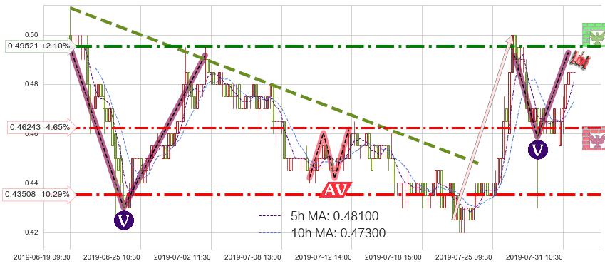 ♘ 支撑价格位0.46243,可信任强度64.02%,距离最后交易2019-07-31 15:00形成的收盘价格0.48500相差 -4.65%