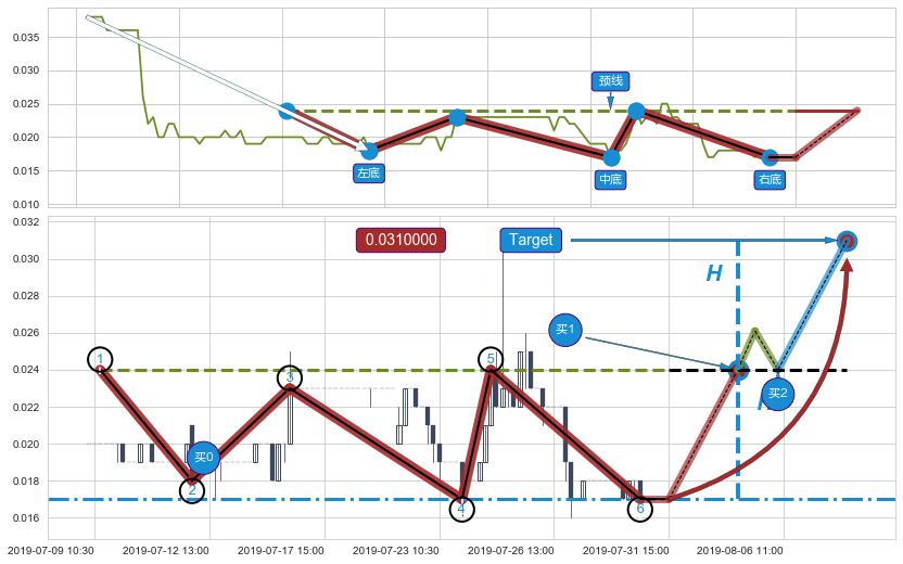 ➢ 最小反转涨幅→𝐇: 0.0070000 (三重底波谷低点到两个波峰连线的垂直距离)