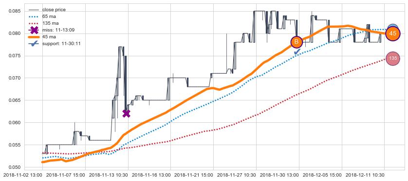 上涨趋势11-02 13:00-12-11 11:30,均线45确认关键支撑1处