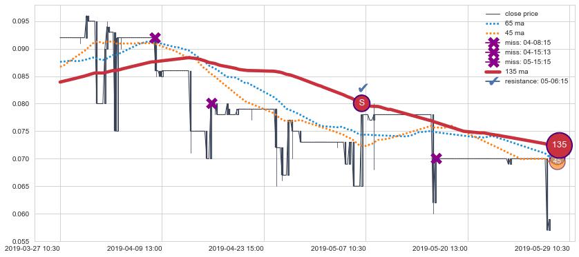 下跌趋势03-27 10:30-05-29 10:30,均线135确认关键阻力1处