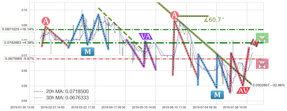 ♘ 阻力价格位0.0782883,可信任强度70.99%,距离最后交易2019-07-31 15:00形成的收盘价格0.0750000相差 +4.38%