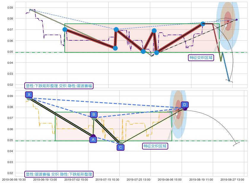 从2019-06-19 09:30至2019-07-03 09:30,共包含55个小时,阶段股价下跌-9.29%,阶段股价变动位移路程比: 1 : 2