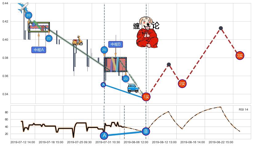 ➣ 【未完成】缠论 起点:07-10:15, 完成第1中枢A,完成第2中枢B,到达07-31:15