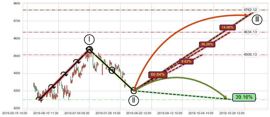 ➣ 循环浪继续向上【平均值】位置(10-17:13, 4634.13),匹配聚类样本比例59.60%, 可能性概率36.26%