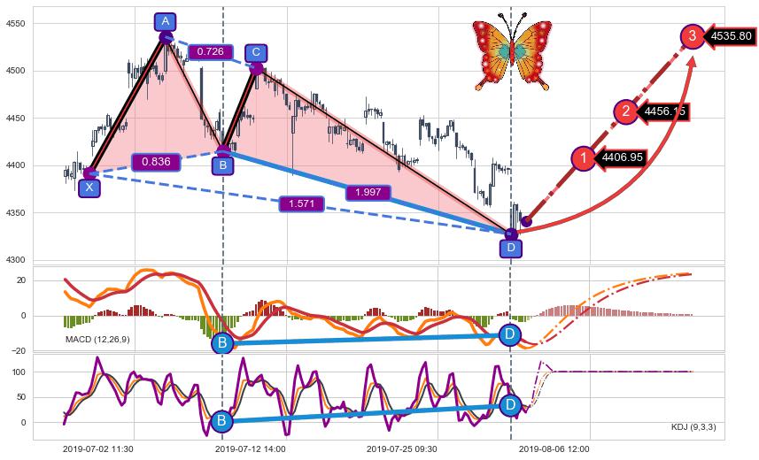 ➣ 已完成【蝴蝶】形态起点X: 06-26:15, 终点D: 07-31:09, 共140交易小时