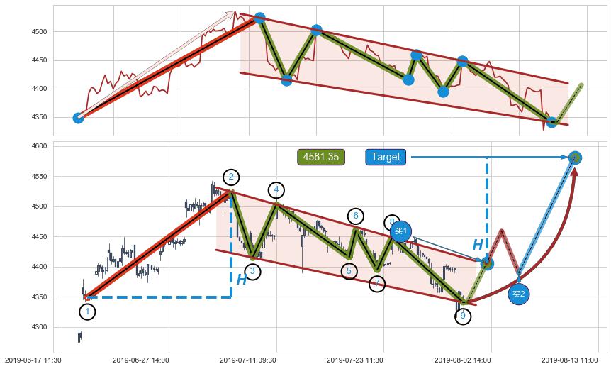➢ AI预测: 假定反转如期而至,第❸价格目标位置(08-14:10, 4535.80)