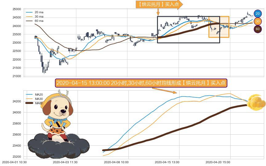 ⚀ 2020-04-06 13:00:00小时-2020-04-22 11:00:00小时显现 20小时-30小时-60小时均线 【烘云托月】买入点 看多信号,后市看涨,买入