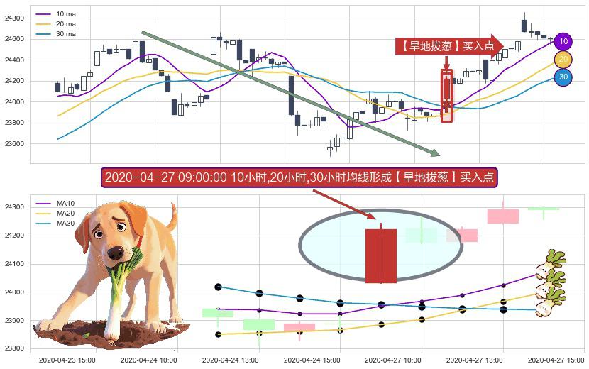 ⚀ 2020-04-27 09:00:00小时显现 10小时-20小时-30小时均线 【旱地拔葱】买入点 看多信号,后市看涨,买入