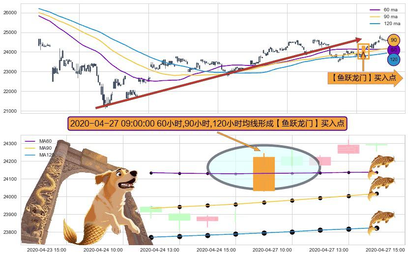 ⚀ 2020-04-27 09:00:00小时显现 60小时-90小时-120小时均线 【鱼跃龙门】买入点 看多信号,后市看涨,买入