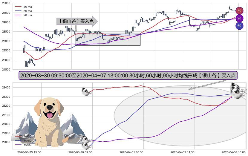 ⚀ 2020-03-30 10:00:00-小时至2020-04-07 13:00:00-小时显现 30小时-60小时-90小时均线 【银山谷】买入点 看多信号,后市看涨,买入