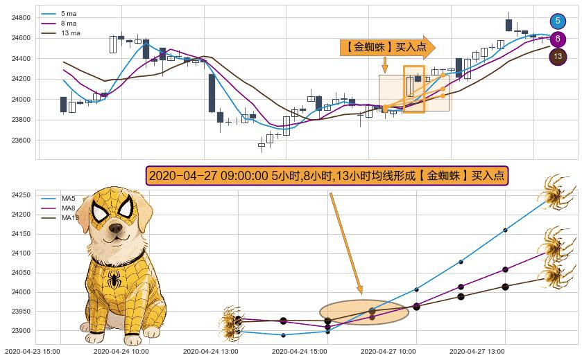 ⚀ 2020-04-27 09:00:00小时显现 5小时-8小时-13小时均线 【金蜘蛛】买入点 看多信号,后市看涨,买入