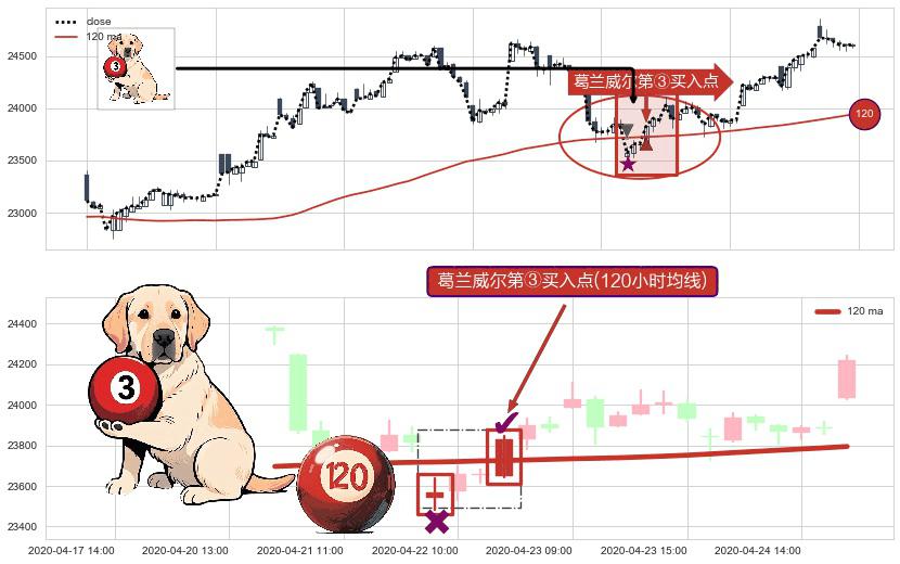 ⚀ 2020-04-22 13:00:00-小时显现 葛兰威尔均线 120小时均线 第③买入点 上升趋势的中继信号,后市看涨,买进信号