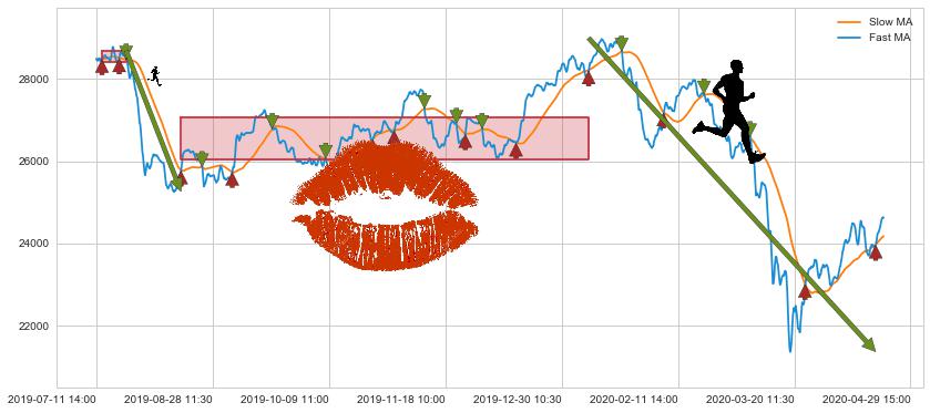07-15 14:00至07-26 13:00 慢线与快线多次接触,存在上下穿越,有缠绕