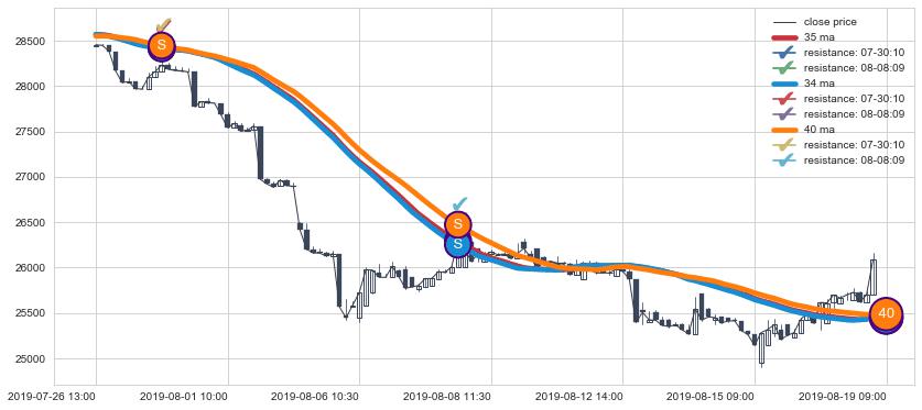 ➢ 最优均线组合共正确确认支撑阻力信号2处,正确确认率 40.00%
