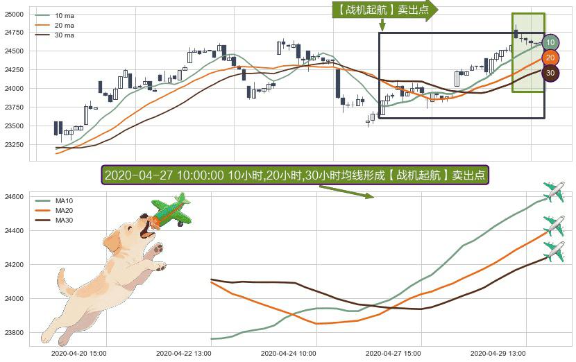 ⚀ 2020-04-22 13:00:00小时-2020-04-29 15:00:00小时显现 10小时-20小时-30小时均线 【战机起航】卖出点 看空信号,后市看跌,卖出