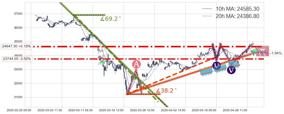 ♘ 支撑价格位23744.05,可信任强度76.27%,距离最后交易2020-04-29 15:00形成的收盘价格24611.60相差 -3.52%