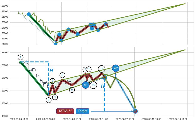 ➢ 最小中继整理跌幅→𝐇: 5291.10 (𝐇楔型旗杆的长度:楔型起点→顶点)