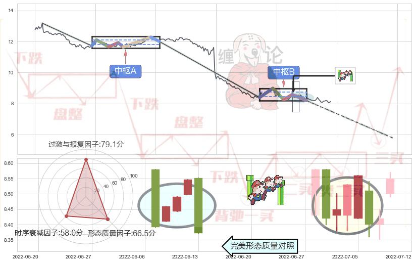 ➢ 下降三部曲(降势三鹤) 🔜 缠论中枢点破位中枢B支撑下拉 综合量化分数:43.21 【偏空】
