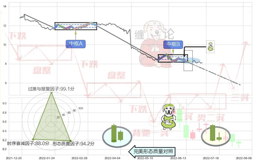 ➢ 下跌身怀六甲 🔜 缠论中枢点破位中枢B支撑下拉 综合量化分数:42.18 【偏空】