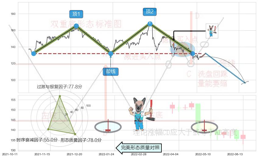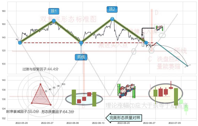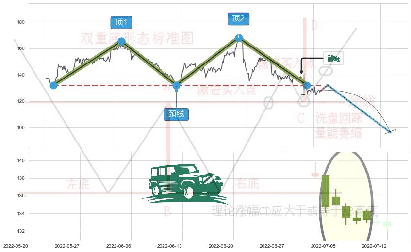 ➢ 【卖1】: 激进型 卖点→(2022-07-14: 132.10 )形成突破双重顶【反转】形态