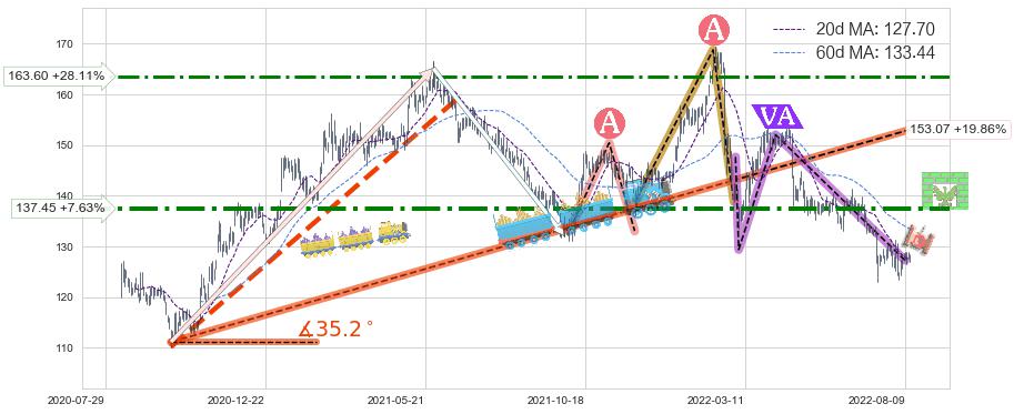 ♘ 阻力价格位163.60,可信任强度64.93%,距离最后交易2022-08-12形成的收盘价格127.70相差 +28.11%