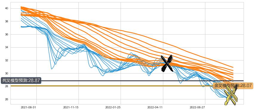 ➣ 70小时均线于(2022-04-19: 31.44)形成【死叉】基于【死叉历史模型】预测死叉后最低波谷价格: 28.87, 死叉后最低价格25.85,已经下跌超出预测最低波谷价格, 预期反弹