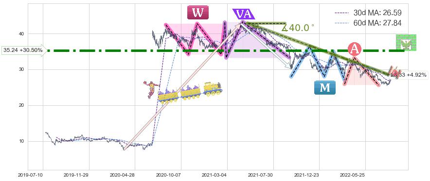 ➢ 【仅预测突破】最后价格:27.00与预测突破价格:29.50→【空间中等】后续最小【整理】第一目标价格→(2023-10-05: 62.59 )