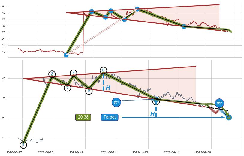 ➣ 【未确认突破,预测即将形成突破】【扩散】三角形反转起点:2020-03-23, 预测突破点:2021-12-20,形态共422交易日