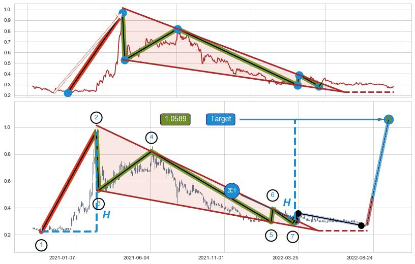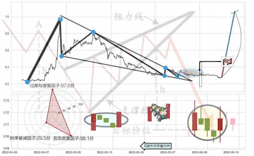 ➢ 【买1】: 激进型 买点 →(2022-03-18: 0.31086 )形成突破降🚩楔型【整理】形态