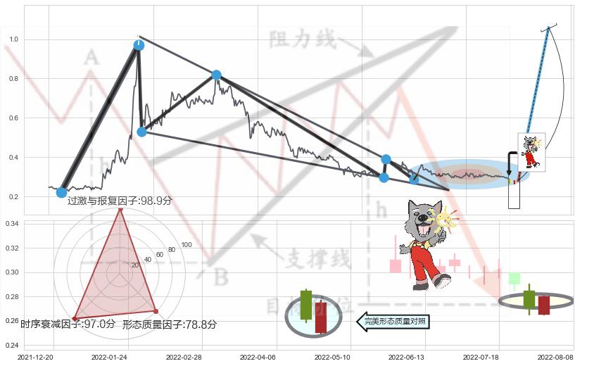 ♘ 阻力价格位0.27065,可信任强度86.71%,距离最后交易2022-08-12形成的收盘价格0.28000相差 -3.34%