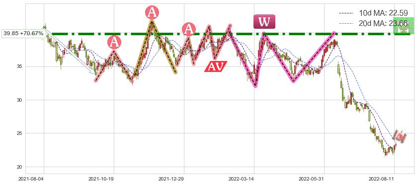 ♘ 阻力价格位39.85,可信任强度99.00%,距离最后交易2022-08-12形成的收盘价格23.35相差 +70.67%
