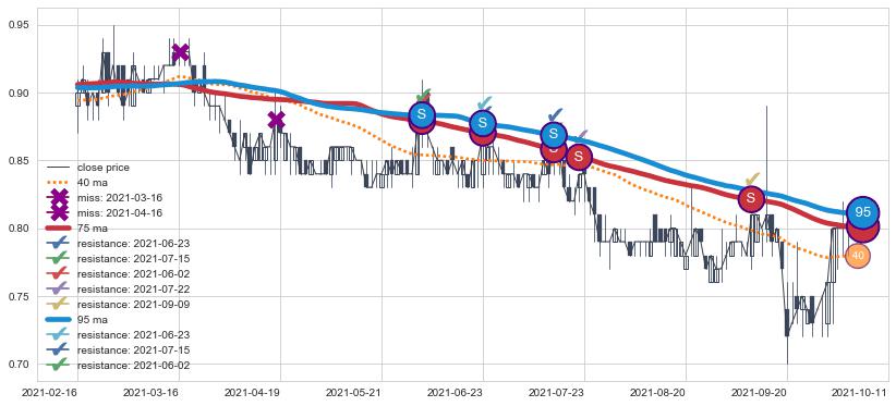 ➣ 70小时均线于(2022-03-09: 0.8349)形成【死叉】基于【死叉历史模型】预测死叉后最低波谷价格: 0.7529, 死叉后最低价格0.6400,已经下跌超出预测最低波谷价格, 预期反弹