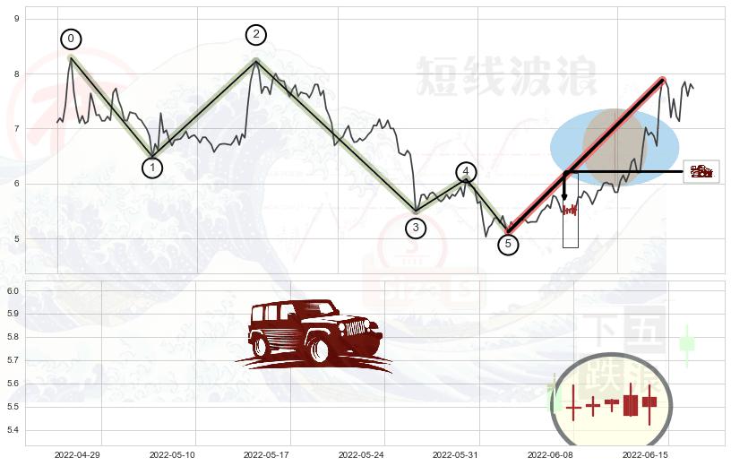 ➢ 🕰 价格走势在2022-06-08至2022-06-14期间形成低档五阳线,残存影响值:0.53