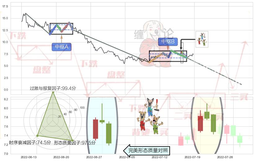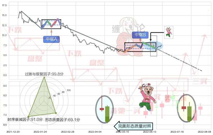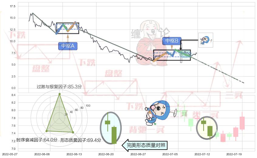 ➣ 【中枢B】:2022-05-12-2022-07-29,中枢由5笔构成,共55交易日, ZG=7.68, ZD=6.85