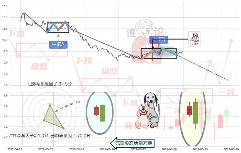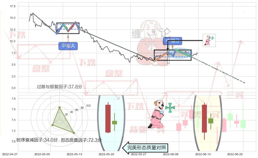 ➣ 下跌螺旋桨 + 缠论中枢点破位中枢B支撑下拉信号叠加后【目标达成率】中等,【看空】信号叠加【存续影响中等】