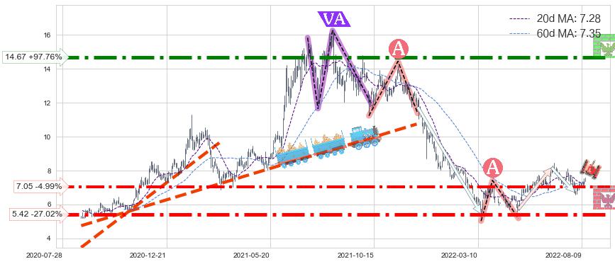 ➣ 【已确认突破】最后价格:7.42与最小【整理】第一目标价格→(2022-10-05: 14.25 )相较: 上涨空间【较大】