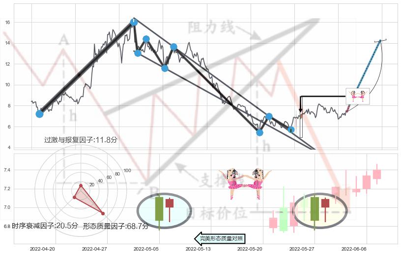 ➢ 🕰 价格走势在2022-06-20至2022-06-20期间形成锤头线(锤子线),残存影响值:6.22