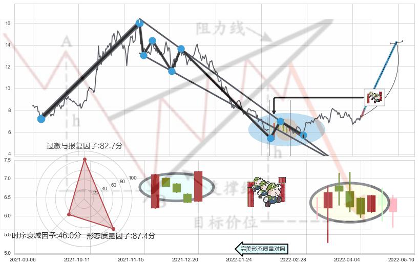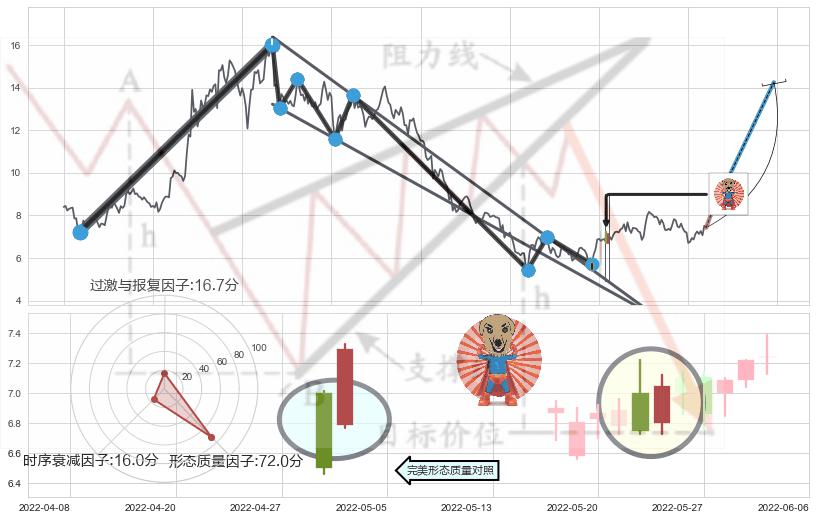 ➣ 曙光初现形态 + 降楔型阻力突破转换支撑上涨信号叠加后【目标达成率】中等,【看多】信号叠加【存续影响中等】