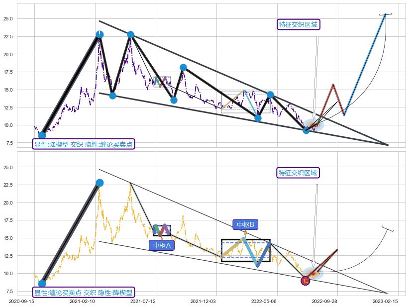 ➢ 降楔型与缠论买卖点信号事件周期长度级别相同,同周期信号事件
