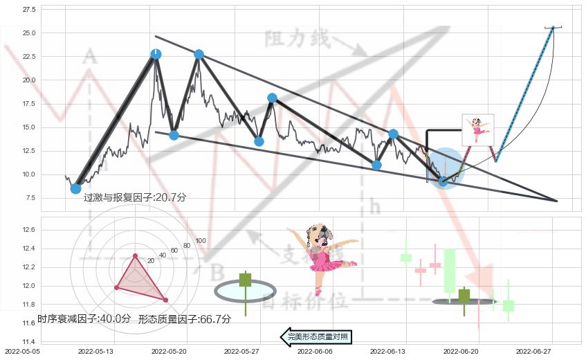 ➢ 🕰 价格走势在2022-06-17至2022-06-17期间形成单针探底(定海神针),残存影响值:2.51