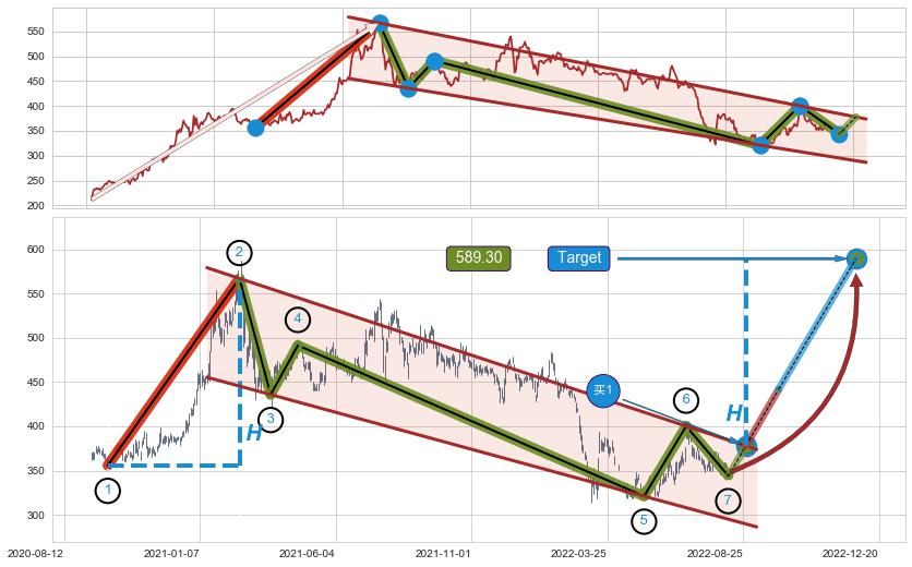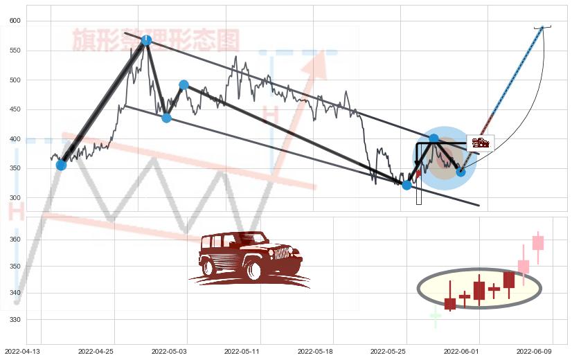 ➣ D点拟合预测价格474.09,距离最后交易收盘价格348.60相差 +36.00%