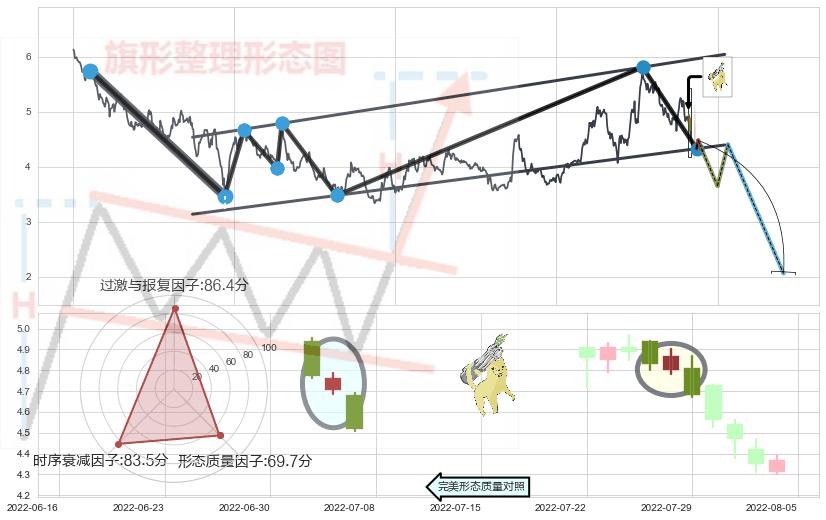 ➢ 空方炮 🔜 升旗形临近支撑猜想转换阻力下跌 综合量化分数:40.69 【偏空】