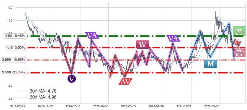 ♘ 支撑价格位4.46,可信任强度73.33%,距离最后交易2022-08-12形成的收盘价格4.48相差 -0.53%