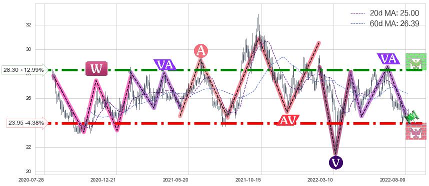♘ 阻力价格位28.30,可信任强度97.96%,距离最后交易2022-08-12形成的收盘价格25.05相差 +12.99%