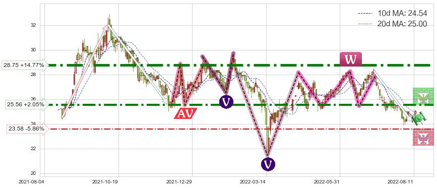 ♘ 阻力价格位25.56,可信任强度79.31%,距离最后交易2022-08-12形成的收盘价格25.05相差 +2.05%