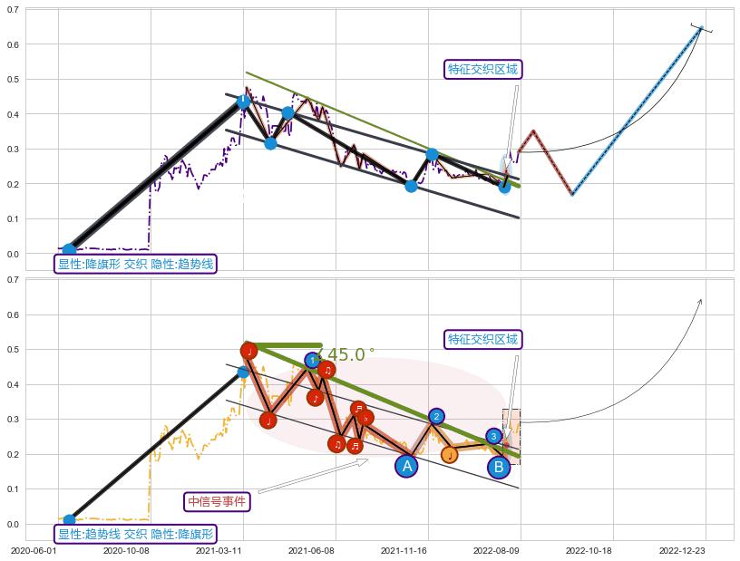 ➢ 趋势线属【中级别信号事件】降旗形属【长级别信号事件】中长周期组合信号事件,中长事件长度比58.82%