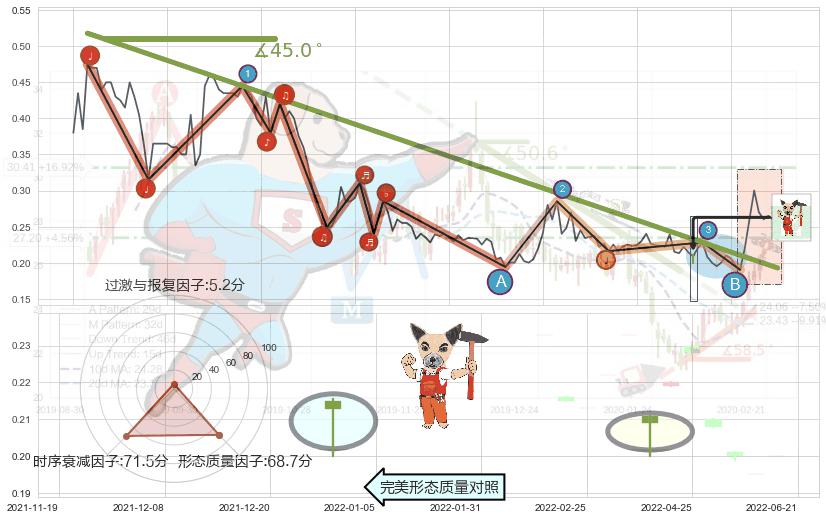 ➢ 2021-03-15-2022-07-19下跌趋势存在反转上涨[机会],其原下跌趋势的阻力位(0.192571)已被突破[强支撑信号],原下跌趋势角度: 45.0˚